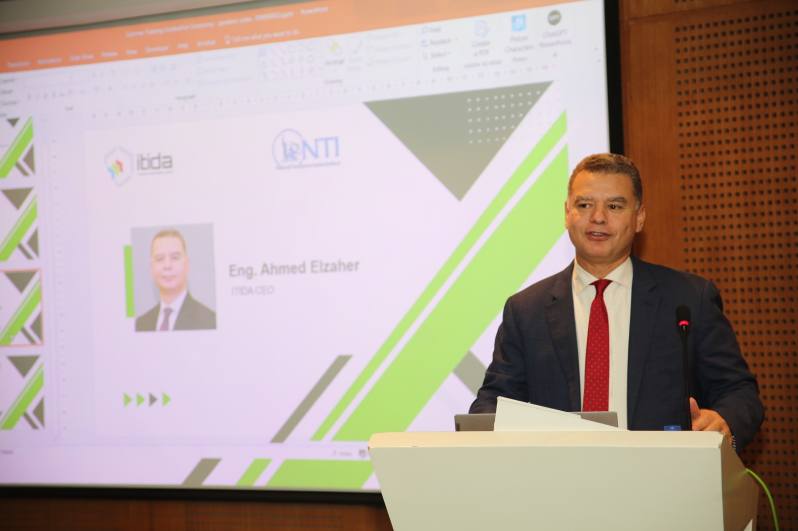 حضر الحفل كل من المهندس أحمد الظاهر، الرئيس التنفيذي لإيتيدا، والدكتور أحمد خطاب، مدير المعهد القومي للاتصالات، والمهندس محمود صفراطه، نائب الرئيس التنفيذي للهيئة لتنمية أسواق تكنولوجيا المعلومات، وعدد من قيادات الهيئة والمعهد.