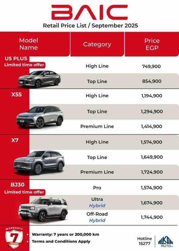 أعلنت شركة بايك عبر وكيلها في مصر عن قائمة أسعار سياراتها لشهر سبتمبر 2025، والتي شهدت طرح عدة فئات بمزايا متنوعة، مع عروض محدودة على بعض الطرازات، وضمان يمتد إلى 7 سنوات أو 200 ألف كيلومتر.
