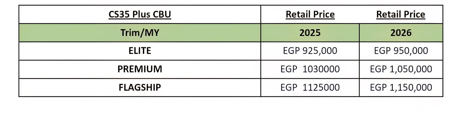 وبحسب القائمة السعرية المعلنة، جاء سعر فئة Premium من «شانجان Uni-T» موديل 2026 عند 1.4 مليون جنيه بدلًا من 1.35 مليون جنيه لموديل 2025، بينما سجلت فئة Flagship نحو 1.5 مليون جنيه مقابل 1.45 مليون جنيه لموديل العام السابق.