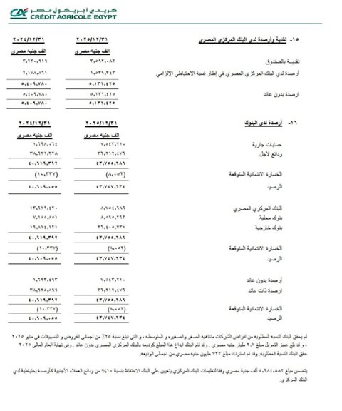 ووفقا لكريدى أجريكول مصر فقد قام بإيداع هذا المبلغ كوديعة بالبنك المركزي المصري دون عائد فى نهاية العام المالي 2025، وحقق النسبة المطلوبة، وتم استرداد مبلغ 733 مليون جنيه، من إجمالي الوديعة.