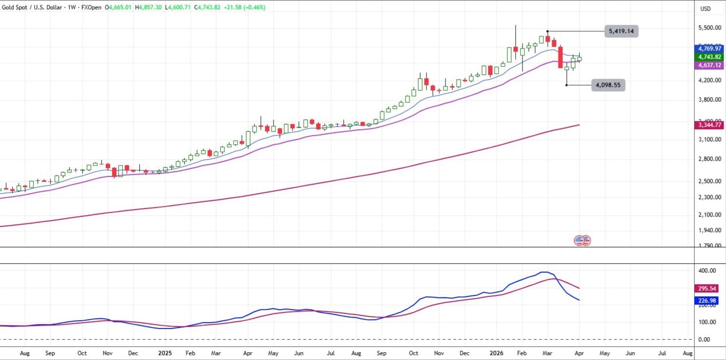 وعلى المدى المتوسط، لا تزال النظرة الإيجابية قائمة، خاصة مع استقرار الأسعار أعلى متوسط 100 أسبوع، ما يدعم احتمالات استهداف مستوى 5420 دولار مجددًا حال استمرار الزخم الشرائي.